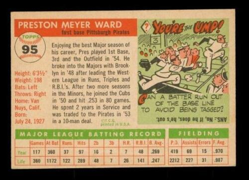 Vintage BASEBALL Card TOPPS 1955 PRESTON WARD 1st Base Pittsburgh Pirates #95