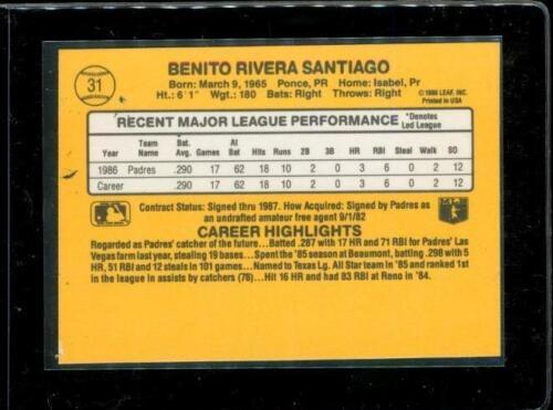 Vintage 1986 DONRUSS RATED ROOKIE Baseball Trading Card #31 BENITO SANTIAGO San Diego Padres