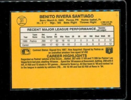 Vintage 1986 DONRUSS ROOKIE Baseball Trading Card #31 BENITO SANTIAGO Padres