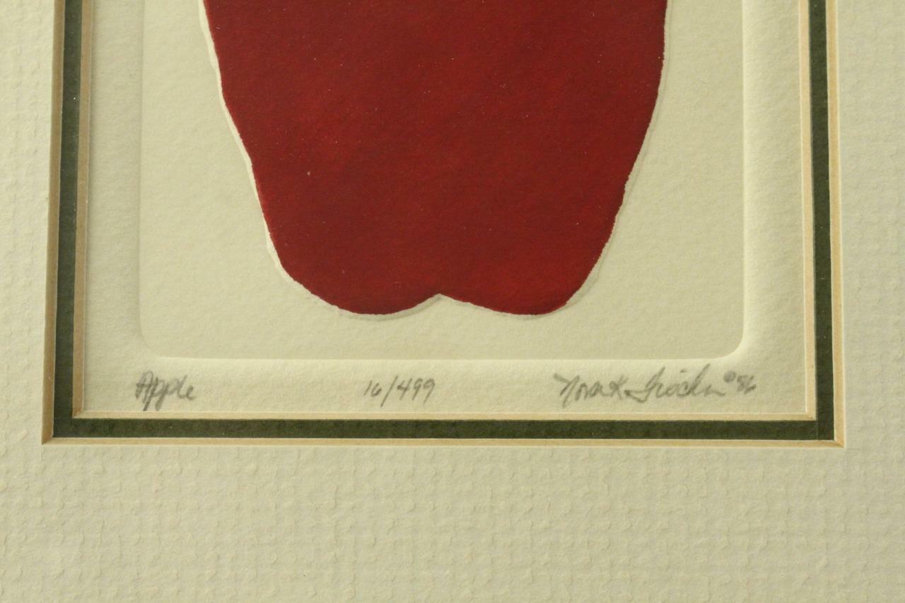 Vintage Signed Framed Paper Stamped Teacher Art Nora K Fisher APPLE LE 10/499