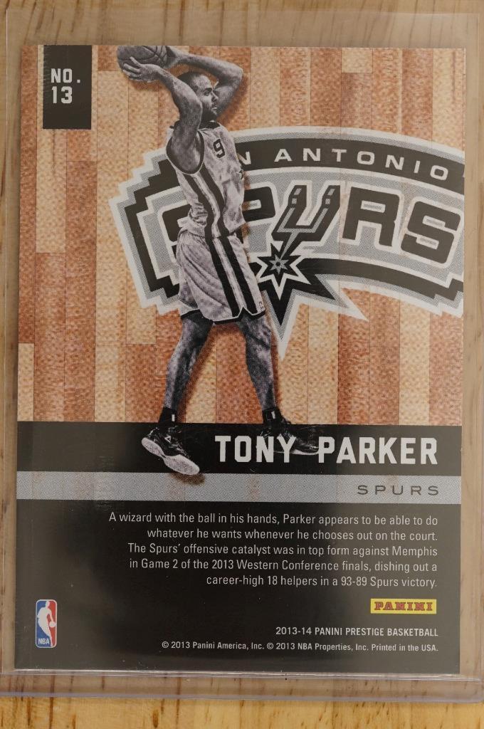 2013-14 Prestige Hardcourt Heroes #13 Tony Parker Spurs Basketball Card