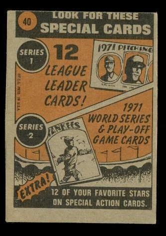 Vintage 1972 TOPPS Baseball Trading Card #40 and 50 similar items