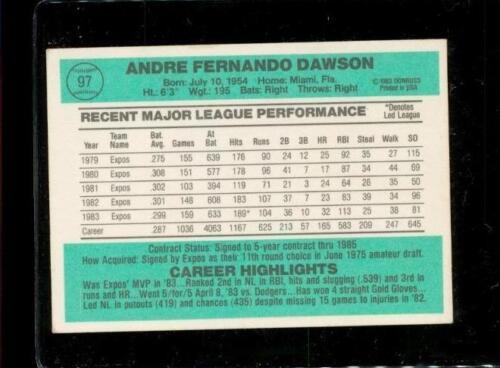 Vintage 1983 DONRUSS Baseball Trading Card #97 ANDRE DAWSON Montreal Expos