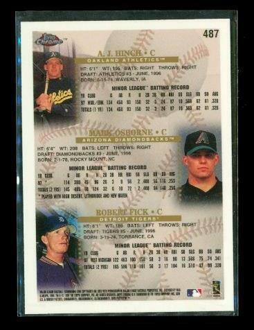 Vintage 1998 TOPPS CHROME Prospects Baseball Card #487 AJ HINCH Oakland Athletics, MARK OSBORNE Arizona Diamondbacks, ROBERT FICK Detroit Tigers