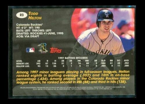 Vintage 1998 TOPPS ROOKIE CLASS Mirror Baseball Card R3 TODD HELTON Colorado Rockies