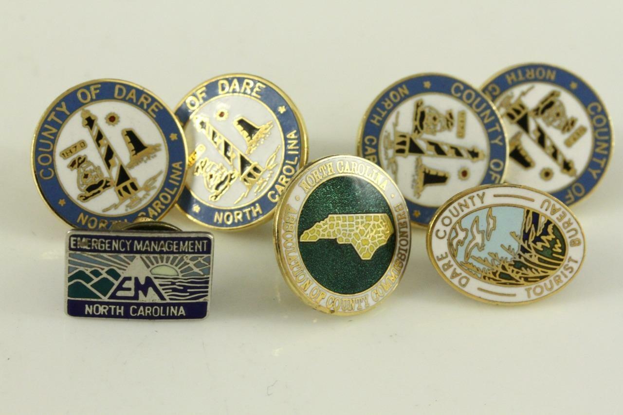 Vintage Costume Jewelry Gold Tone Enamel Metal DARE COUNTY North Carolina Pins