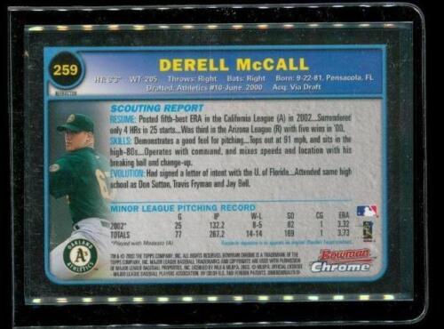 2003 TOPPS BOWMAN CHROME 1st Year Refractor Baseball Card #259 DERELL MCCALL Oakland Athletics
