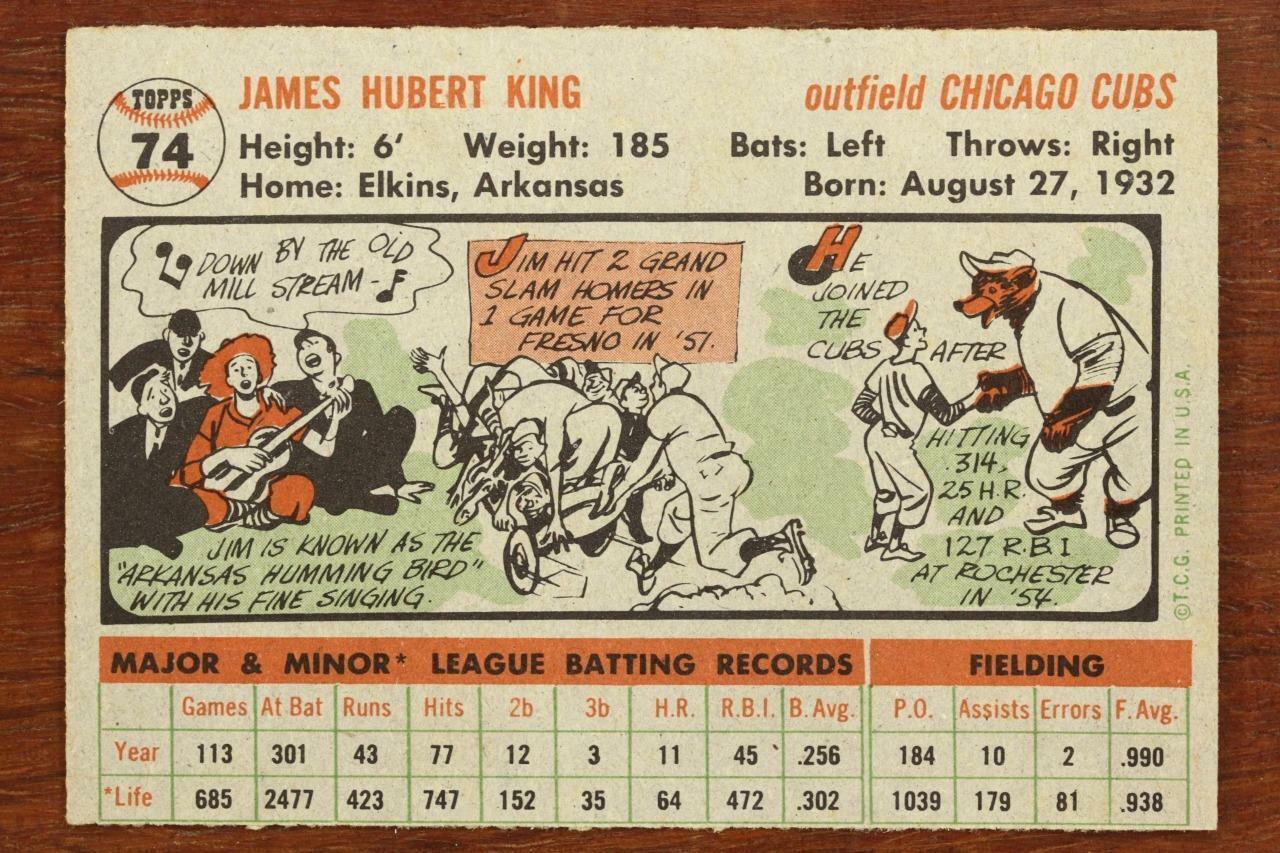 Vintage BASEBALL Card TOPPS 1956 JIM KING Outfield Chicago Cubs # 74
