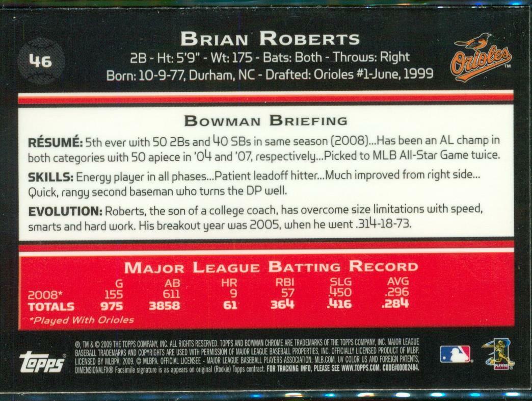 2009 Baseball Card TOPPS Bowman Chrome #46 BRIAN ROBERTS Baltimore Orioles
