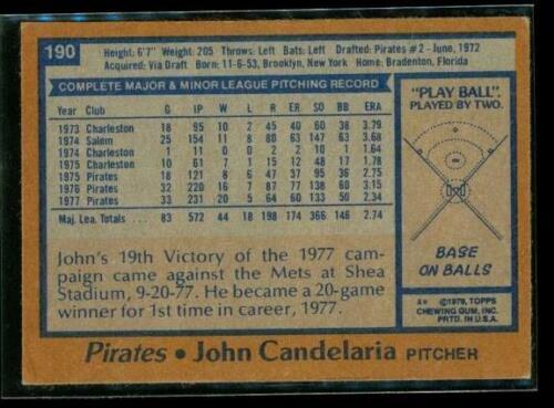 Vintage 1978 TOPPS Baseball Trading Card #190 JOHN CENDELARIA Pittsburgh Pirates
