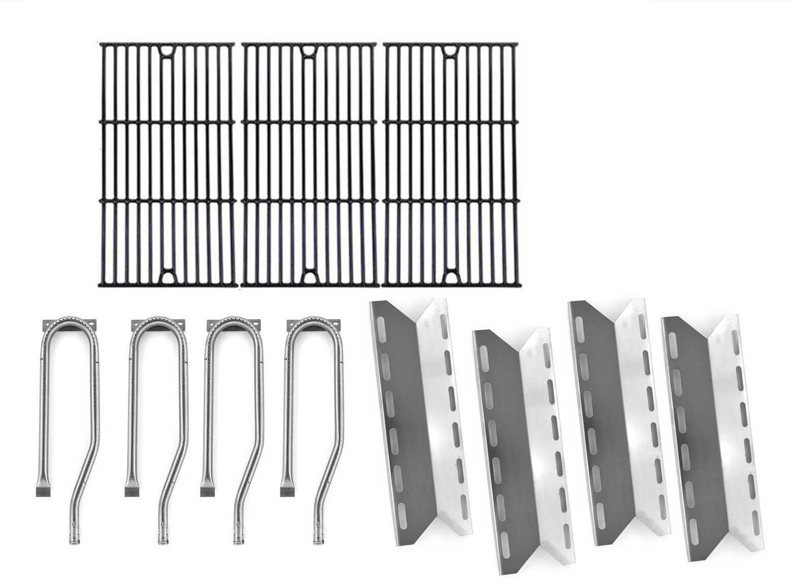 This kit includes 4 Stainless Steel Burners, 4 Stainless Steel Heat Plates, Porcelain Cast Iron Cooking Grid (Set of 3)