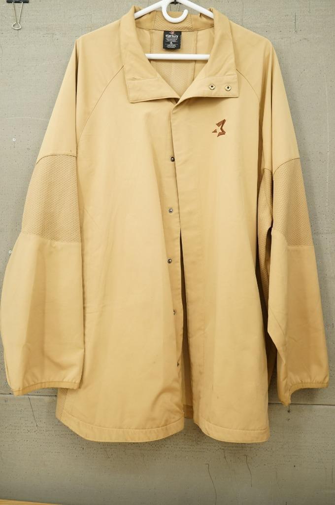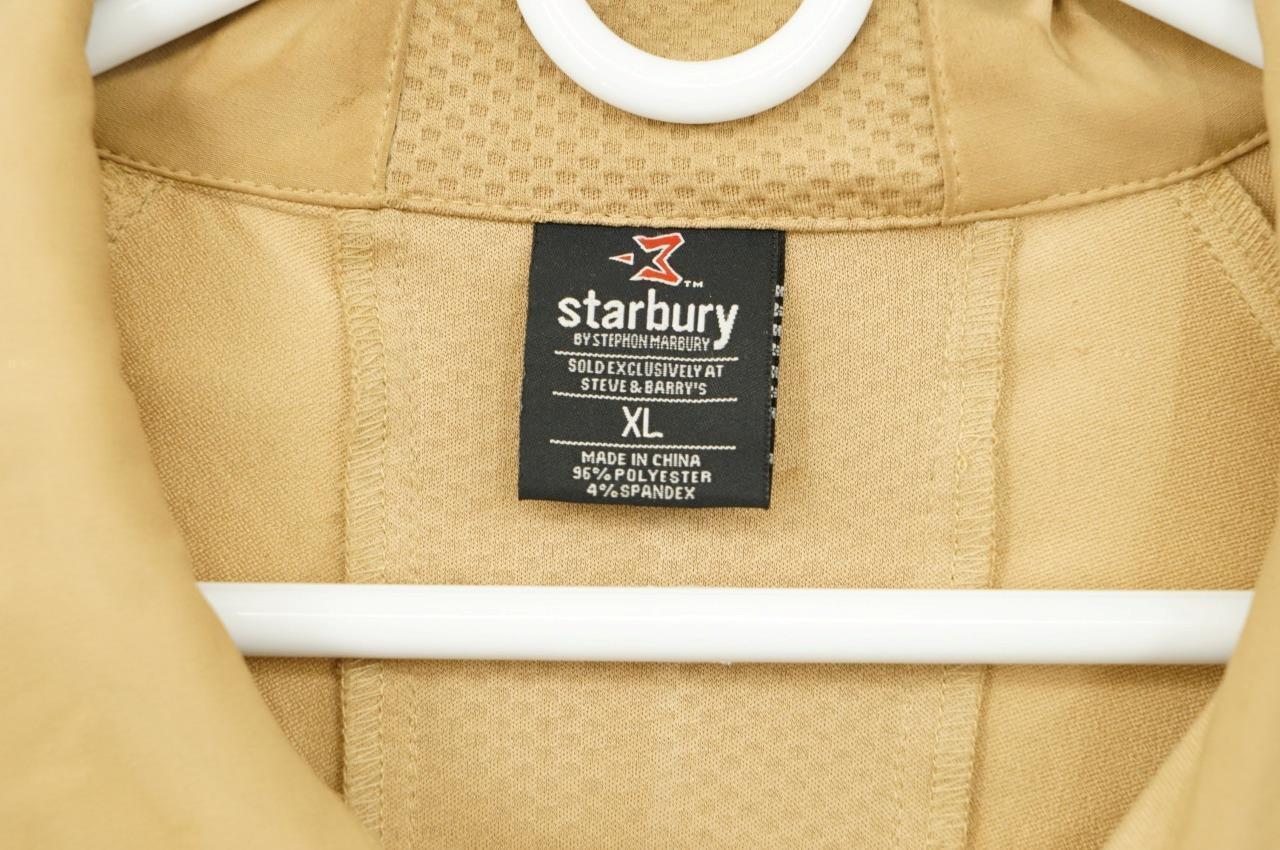 Vintage Mens Lightweight Jacket STARBURY Steve Berrys Tan XL Grandpa Style. Maroon logo. Polyester blend. Easy wash in cold water. Vented sleeves and back. 34" from collar to hem. No smoke or pet odors.