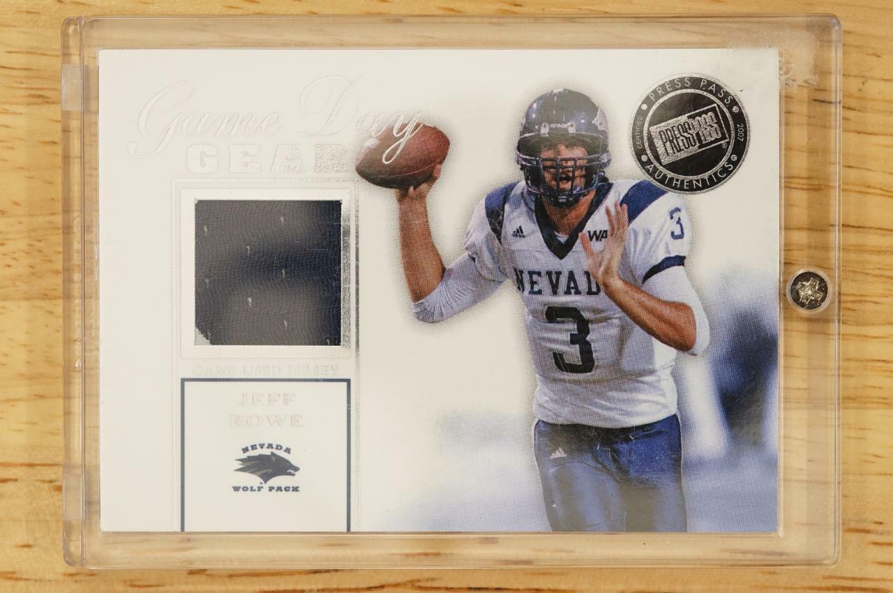 2007 Press Pass Game Day Gear Football Card PATCH Jeff Rowe GDG-JR2 Nevada College Career Jersey. Mounted in a one touch.