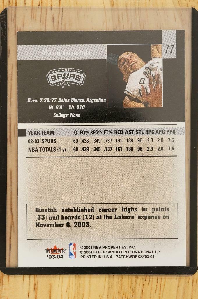 2003-04 Fleer Patchworks Basketball Card #77 MANU GINOBILI San Antonio Spurs