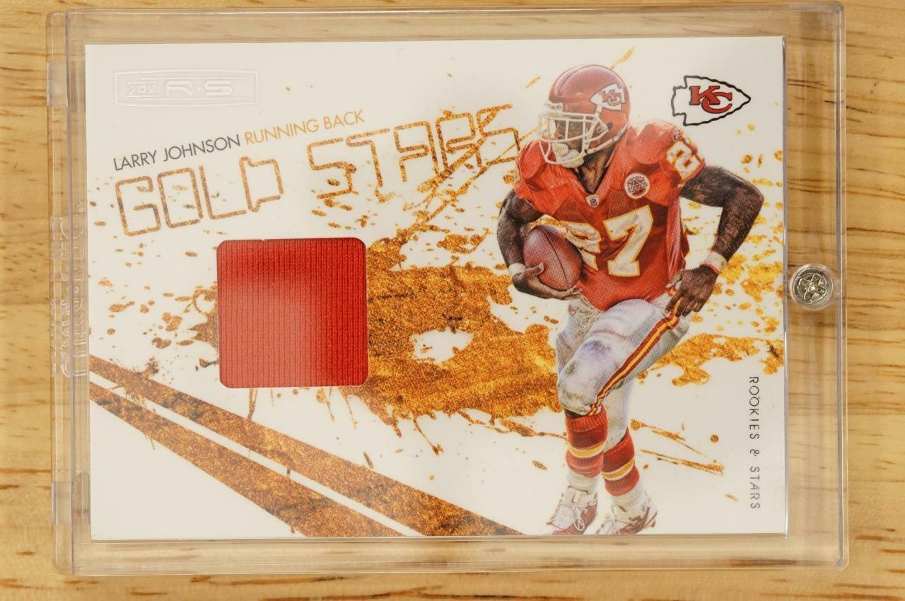 2009 Panini RS Football Card Larry Johnson Rookie Patch LE 207/299 KC Chiefs #4. Mounted in a one touch.