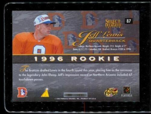 Vintage 1996 PINNACLE SELECT CERT RC Chrome Football Card #87 JEFF LEWIS Broncos
