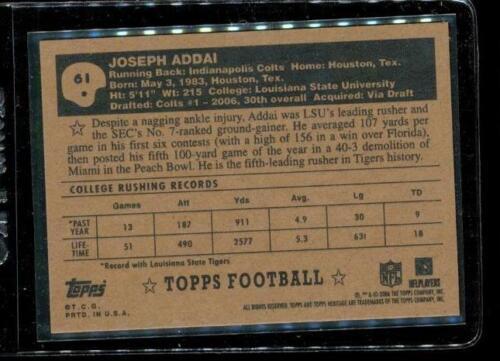 2006 TOPPS HERITAGE ROOKIE Football Card #61 JOSEPH ADDAI Indianapolis Colts