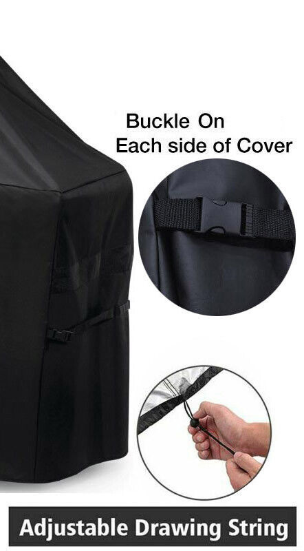 This heavy-duty Grill Cover snap around legs to help protect your bbq grill cover from high winds and all other elements. The bbq grill cover comes with two handle for easy removal and fastening buckles on both sides, to secure the barbecue grill cover to the grill.