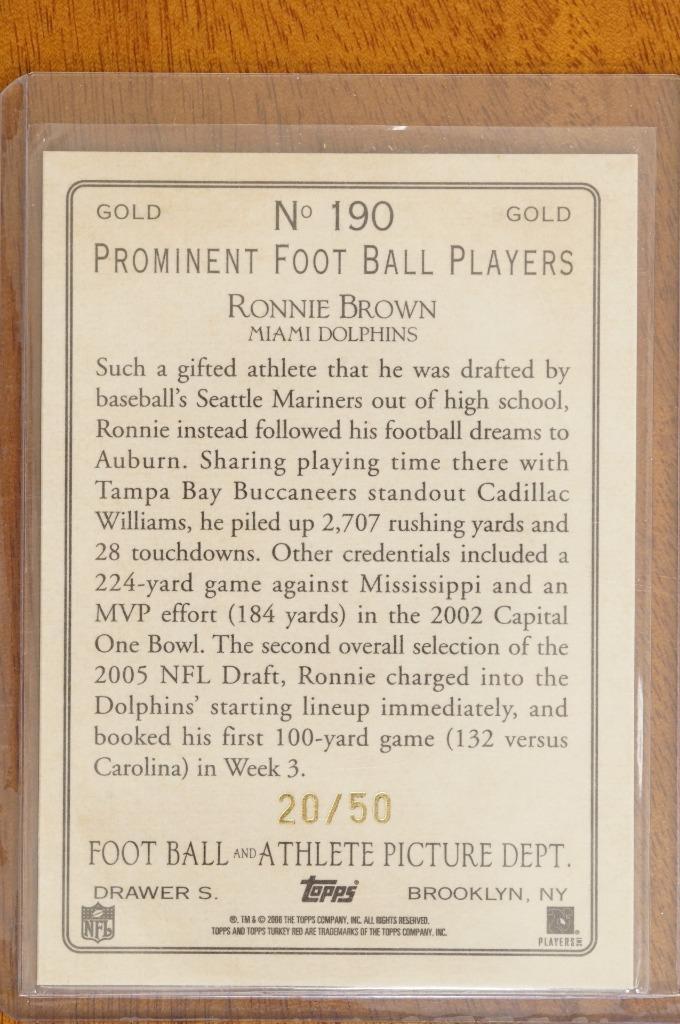 2005 Topps Turkey Red #190 Ronnie Brown Green Jersey RC Rookie Gold Border 20/50