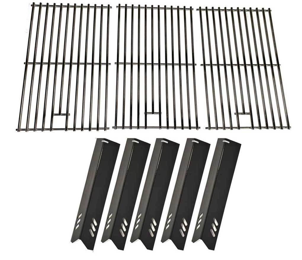 This kit includes 5 Porcelain Steel Heat Plates and SUS304 Solid Rod Stainless Steel Cooking Grate (Set of 3)