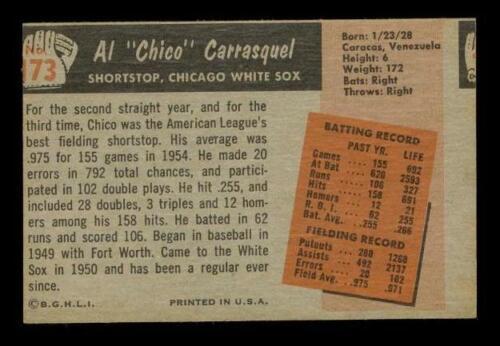 Vintage 1955 BASEBALL Card BOWMAN #173 Al CHICO CARRASQUEL Chicago White Sox