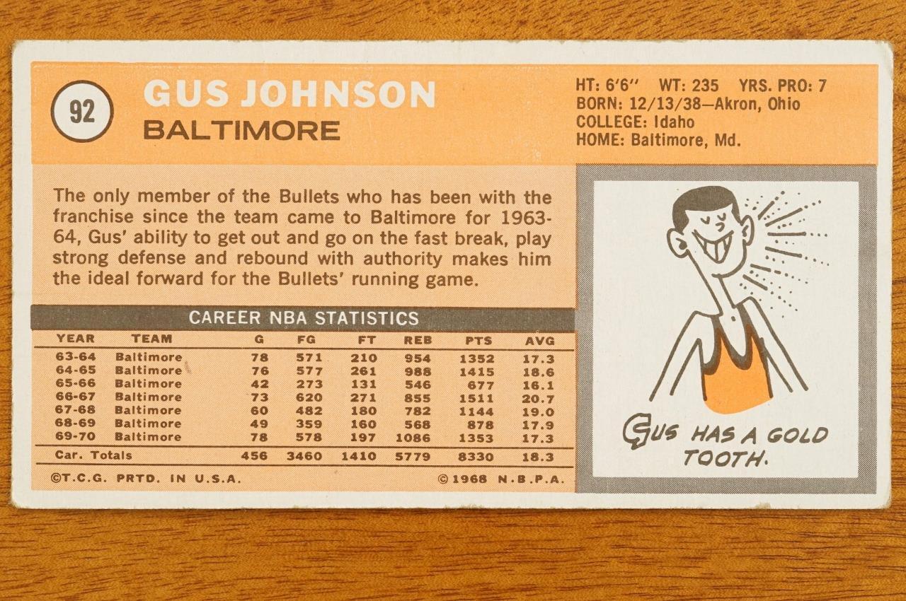 Vintage 1970-71 TOPPS #92 Gus Johnson Baltimore Basketball Card
