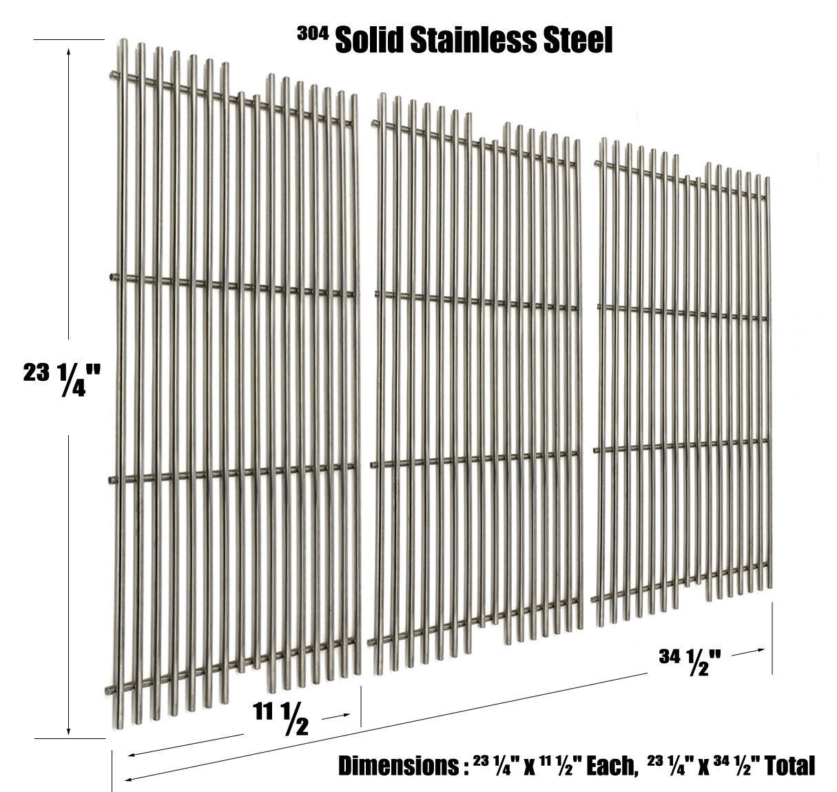 SUS304 Solid Rod Stainless Steel Cooking Grates (Set of 3): 23-1/4" x 11-1/2" Each