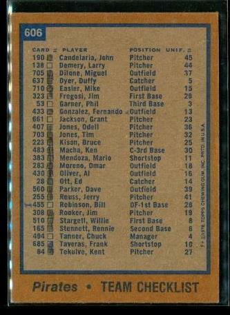 Vintage 1978 TOPPS Baseball Trading Card #606 TEAM CHECKLIST Pittsburgh Pirates