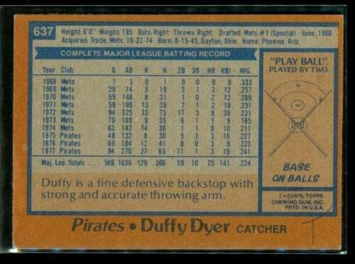Vintage 1978 TOPPS Baseball Trading Card #637 DUFFY DYER Pittsburgh Pirates