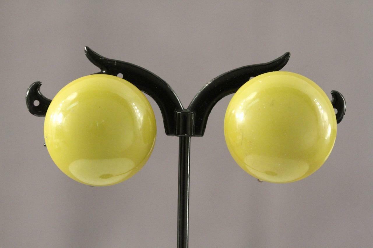 Vintage Costume Jewelry Olive Green Bakelite Screwback Plastic Clip Earrings 1" wide dome. Yellow/green tone. No smoke or pet odor.