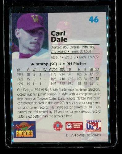 Vintage 1994 SIGNATURE ROOKIE AUTOGRAPH Baseball Card #46 CARL DALE Cardinals LE