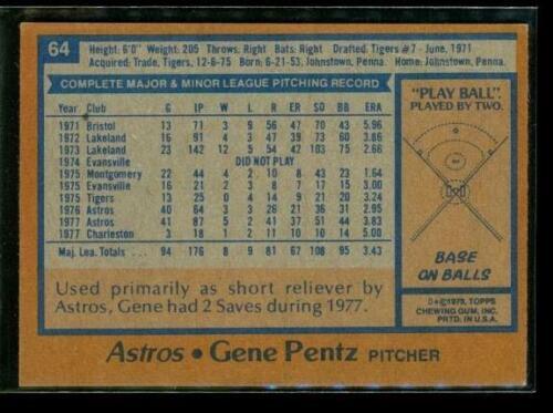 Vintage 1978 TOPPS Baseball Trading Card #64 GENE PENTZ Houston Astros