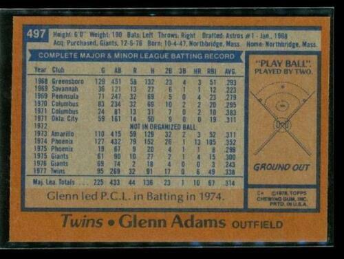 Vintage 1978 TOPPS Baseball Trading Card #497 GLENN ADAMS Minnesota Twins