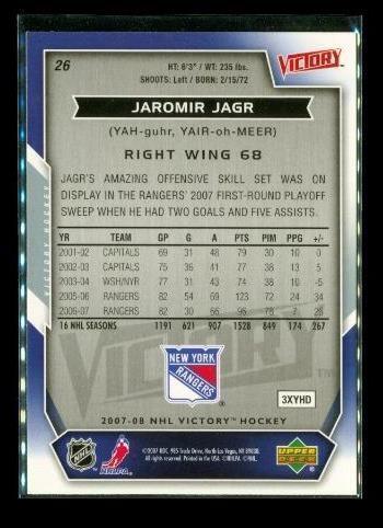 2007 UPPER DECK VICTORY Hockey Trading Card #26 JAROMIR JAGR New York Rangers