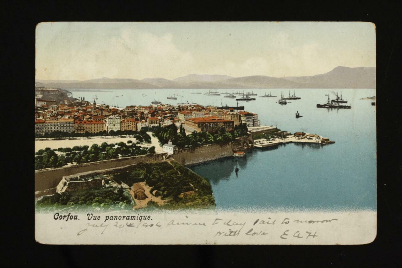Vintage Postcard Postal History Corfu Greece to USA 1906 UDB Panoramic View