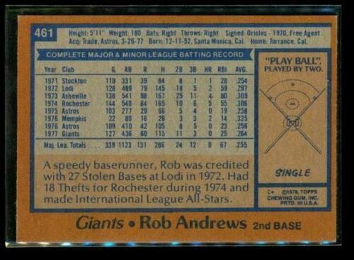 Vintage 1978 TOPPS Baseball Trading Card #461 ROB ANDREWS San Francisco Giants