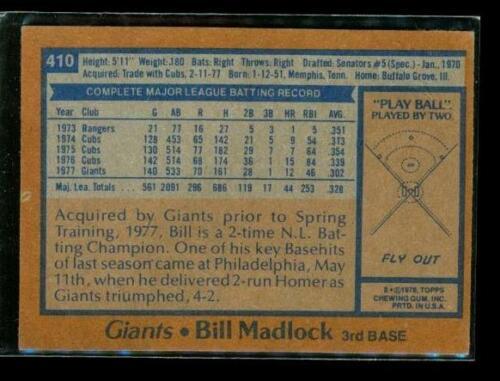 Vintage 1978 TOPPS Baseball Trading Card #410 BILL MADLOCK San Francisco Giants