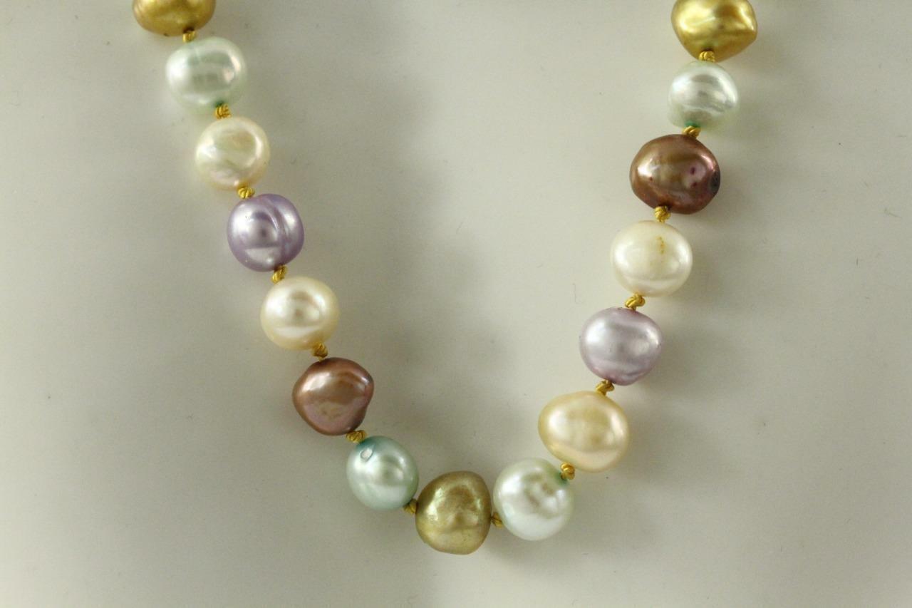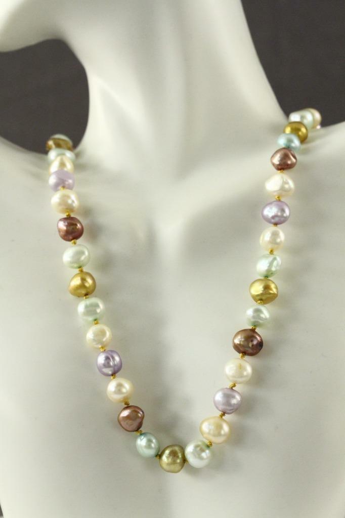 Fine Estate Jewelry 1/20 12KT Gold Filled Multi Color Pastel Pearl Necklace 17"