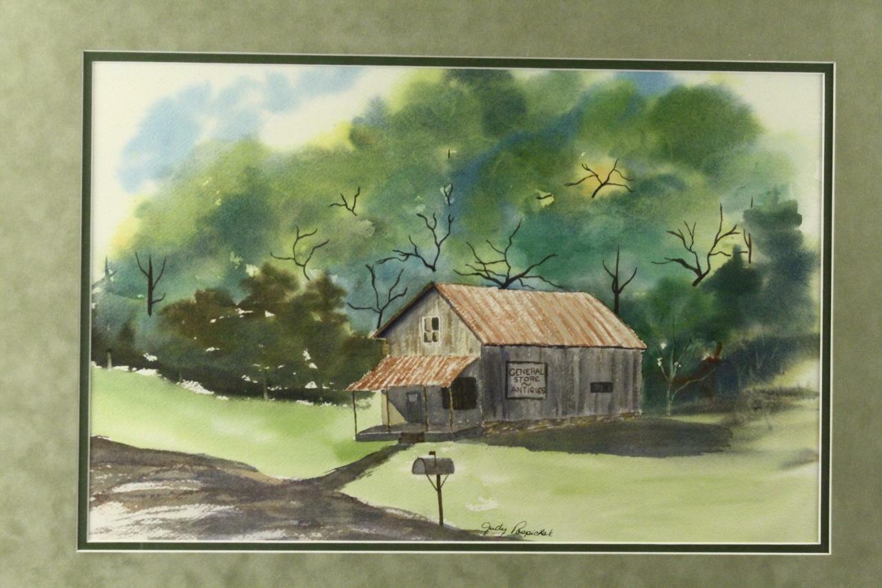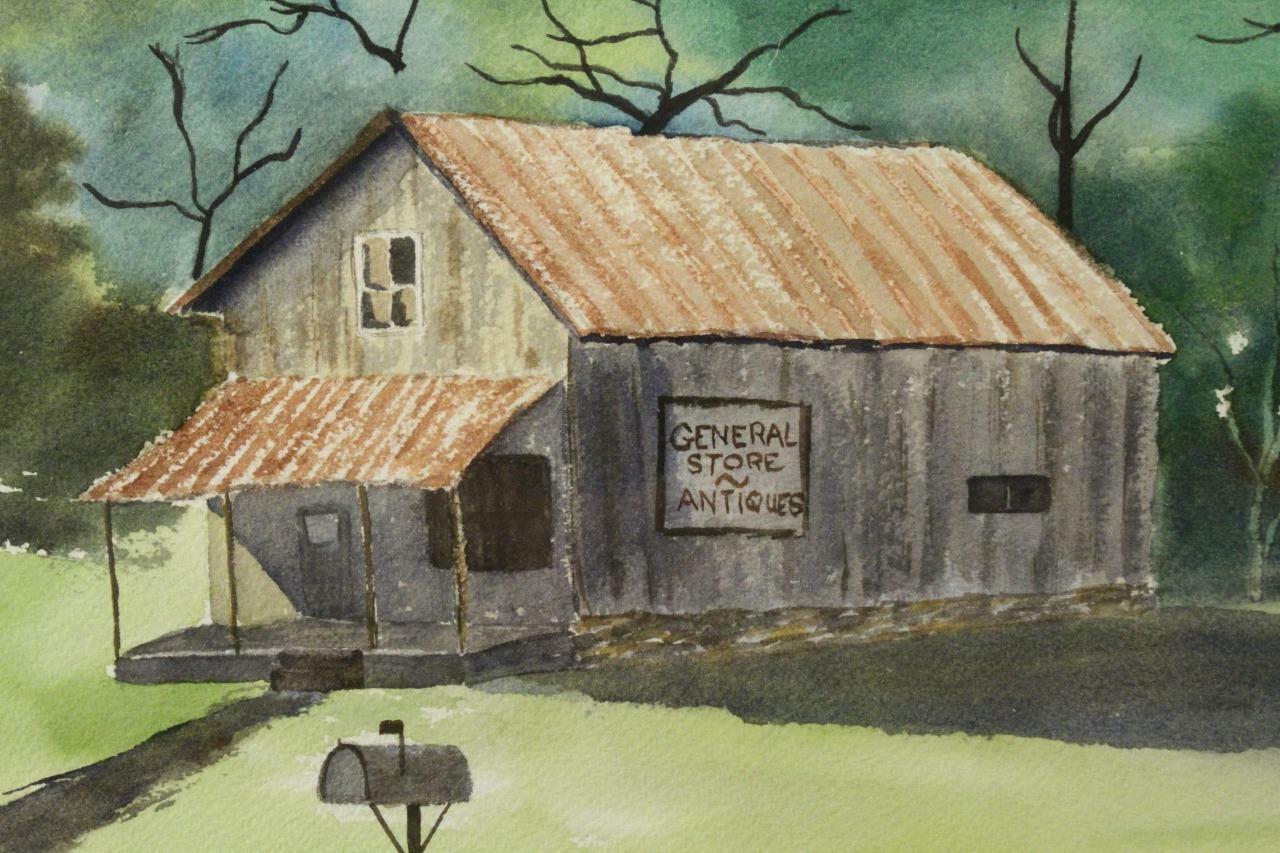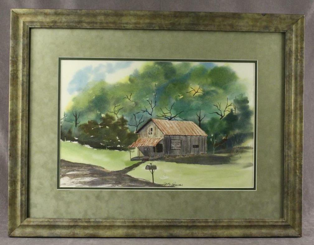 Original Signed Art Watercolor Painting Judy Pospichal GENERAL STORE Antiques