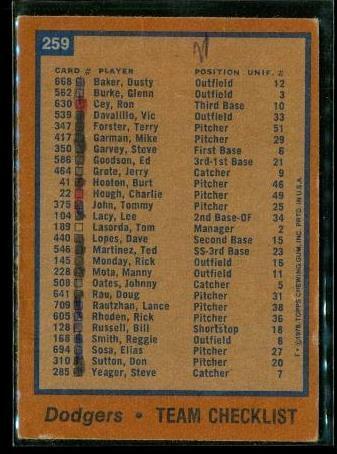 Vintage 1978 TOPPS Baseball Trading Card #259 TEAM CHECKLIST Los Angeles Dodgers