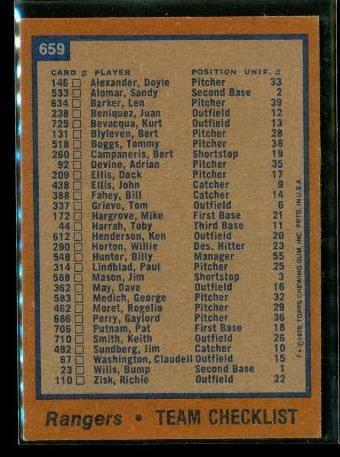 Vintage 1978 TOPPS Baseball Trading Card #659 TEAM CHECKLIST Texas Rangers