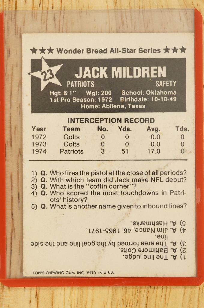1975 Topps Football Card Wonder Bread All-Star Series Jack Mildren #23 Rookie RC