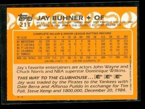Vintage 1988 TOPPS Baseball Trading Card 21T JAY BUHNER New York Yankees