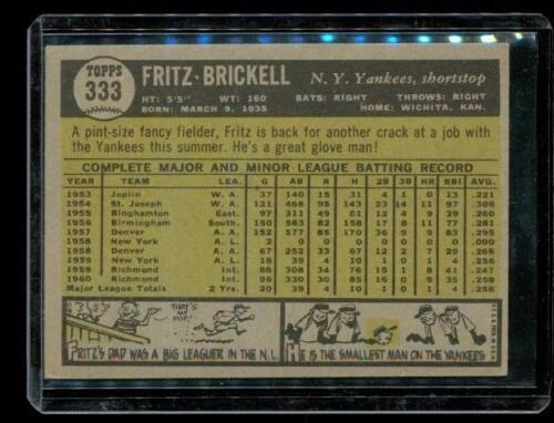 Vintage 1961 TOPPS ROOKIE Baseball Card #333 FRITZ BRICKELL New York Yankees