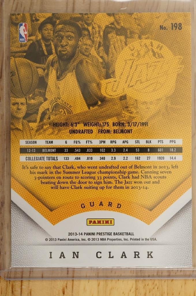 2013-14 Panini Prestige Ian Clark Utah Jazz #198 NBA Rookie RC Card Basketball