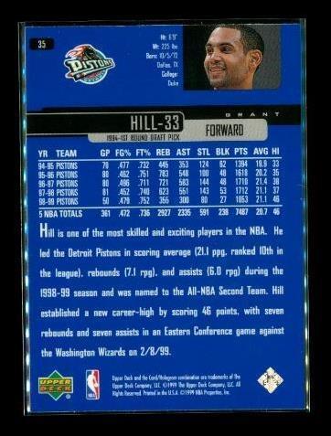 Vintage 1998-99 UPPER DECK Basketball Card #35 GRANT HILL Detroit Pistons