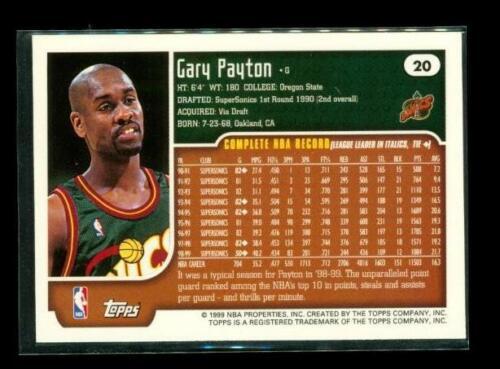 Vintage 1998-99 TOPPS Basketball Trading Card #20 GARY PAYTON Seattle Supersonics
