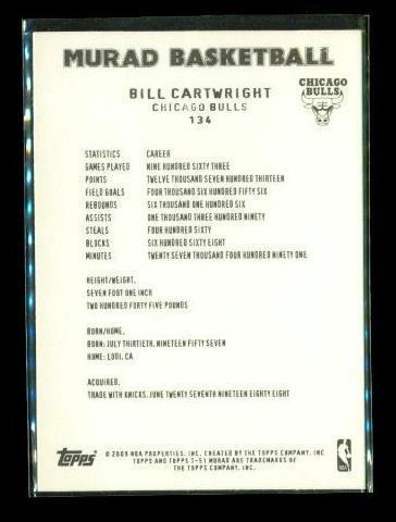 2008-09 TOPPS T-51 MURAD Basketball Trading Card #134 BILL CARTWRIGHT Chicago Bulls