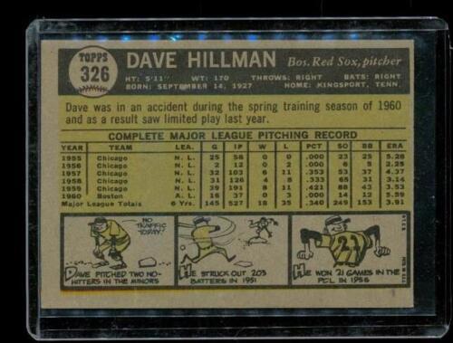 Vintage 1961 TOPPS Baseball Trading Card #326 DAVE HILLMAN Boston Red Sox