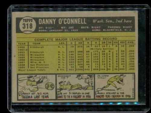 Vintage 1961 TOPPS Baseball Trading Card #318 DANNY O'CONNELL Washington Senators